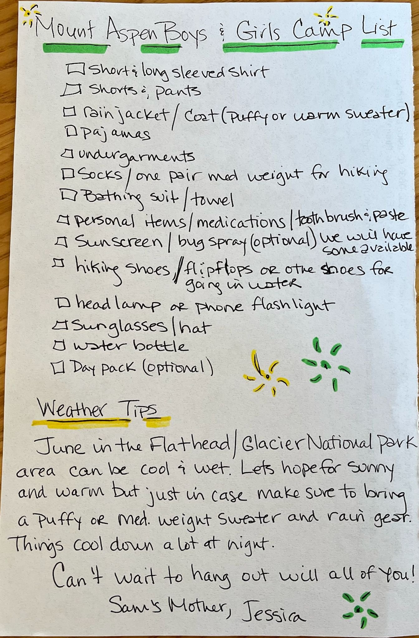 Sunscreen (optional – camp will provide some)